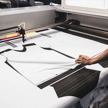 After sourcing, the fabric is cut down into pieces according to the patterns. After that, according to our client's requirements, these pieces have printing or embroidery.